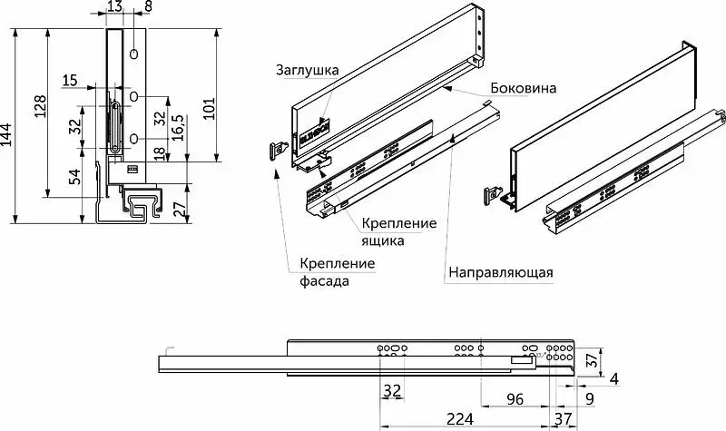 -элементы крепления корпуса ящика, а также инструкция по установке.