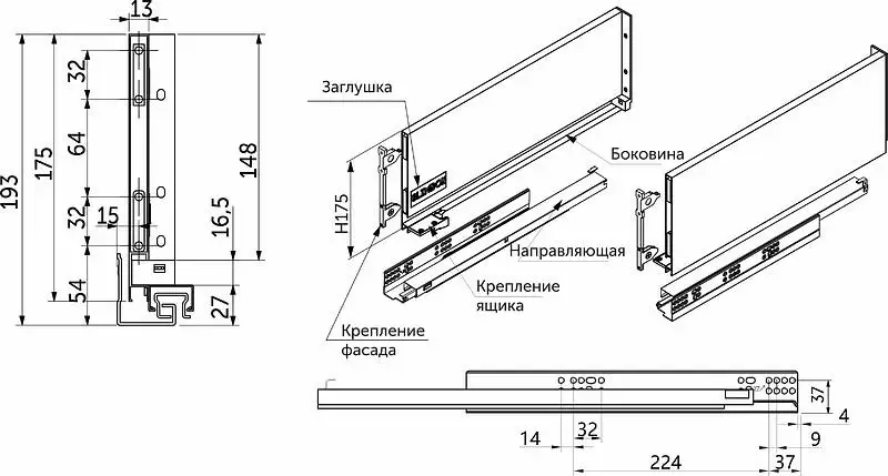 -элементы крепления корпуса ящика, а также инструкция по установке.