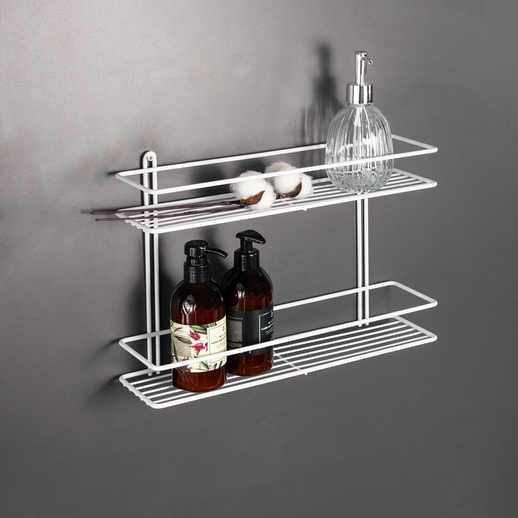 Полка навесная для кухни или ванной комнаты. Предназначена для хранения бытовых мелочей. Дюбеля и саморезы для крепления к стене не входят в комплектацию изделия.