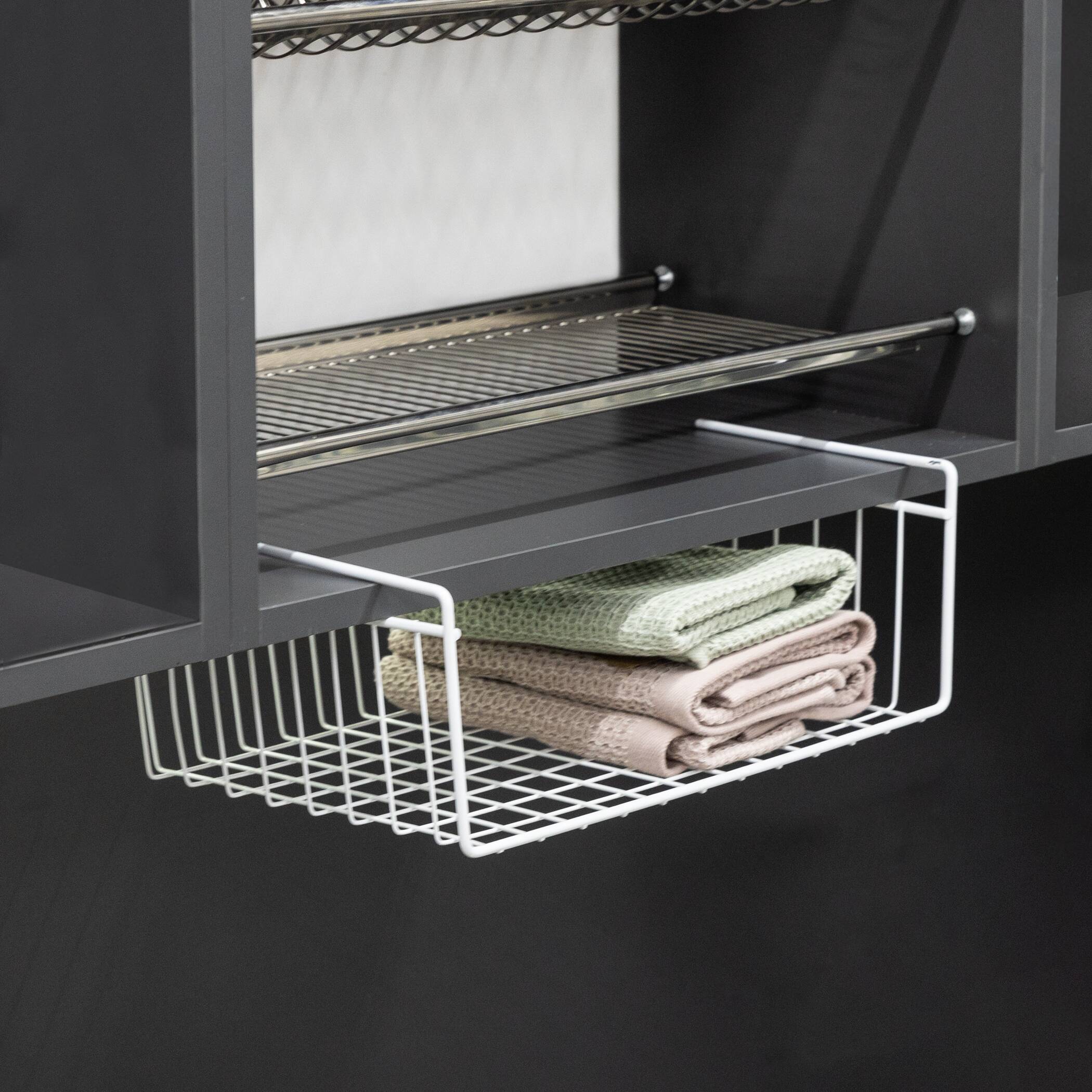 Полка является удобным дополнительным местом для компактного хранения мелочей. Можно навешивать на полку внутри шкафа (на кухне или в гардеробе), либо на его дно, на столешницу (если она сделана из ДСП18 или ДСП16). Полка одевается на ДСП и не требует специального монтажа.