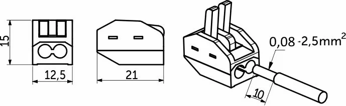 Соединитель клеммный PCT-212, быстрозажимной, 0.08-2.5 мм2, 16 А, 250 В, для любого типа провода.