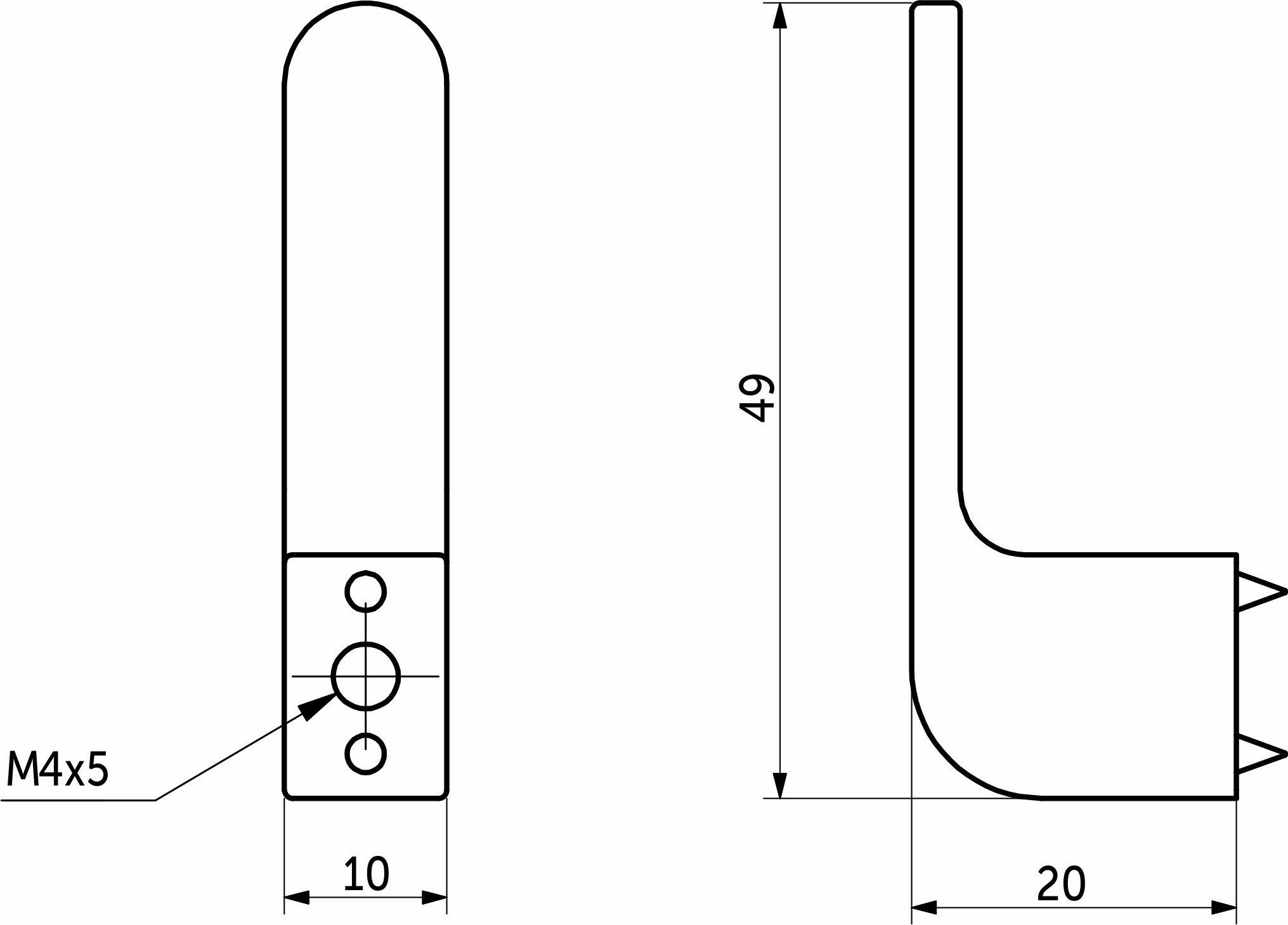 Крепление к поверхности с помощью винтов. Имеет pin, который защищает крючок от прокручивания вокруг своей оси.