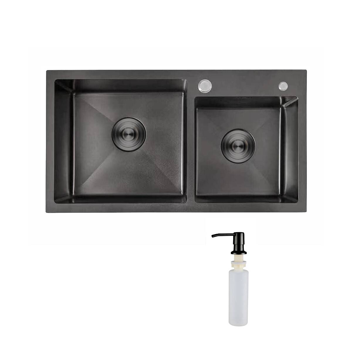 Мойка н/сталь, прямоугольная двухчашевая, 780*430мм, глянец черный, PVD, мойка справа, врезн на/вровень столешнице, AKS (3,2мм)