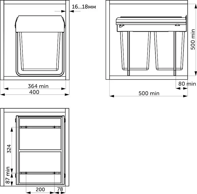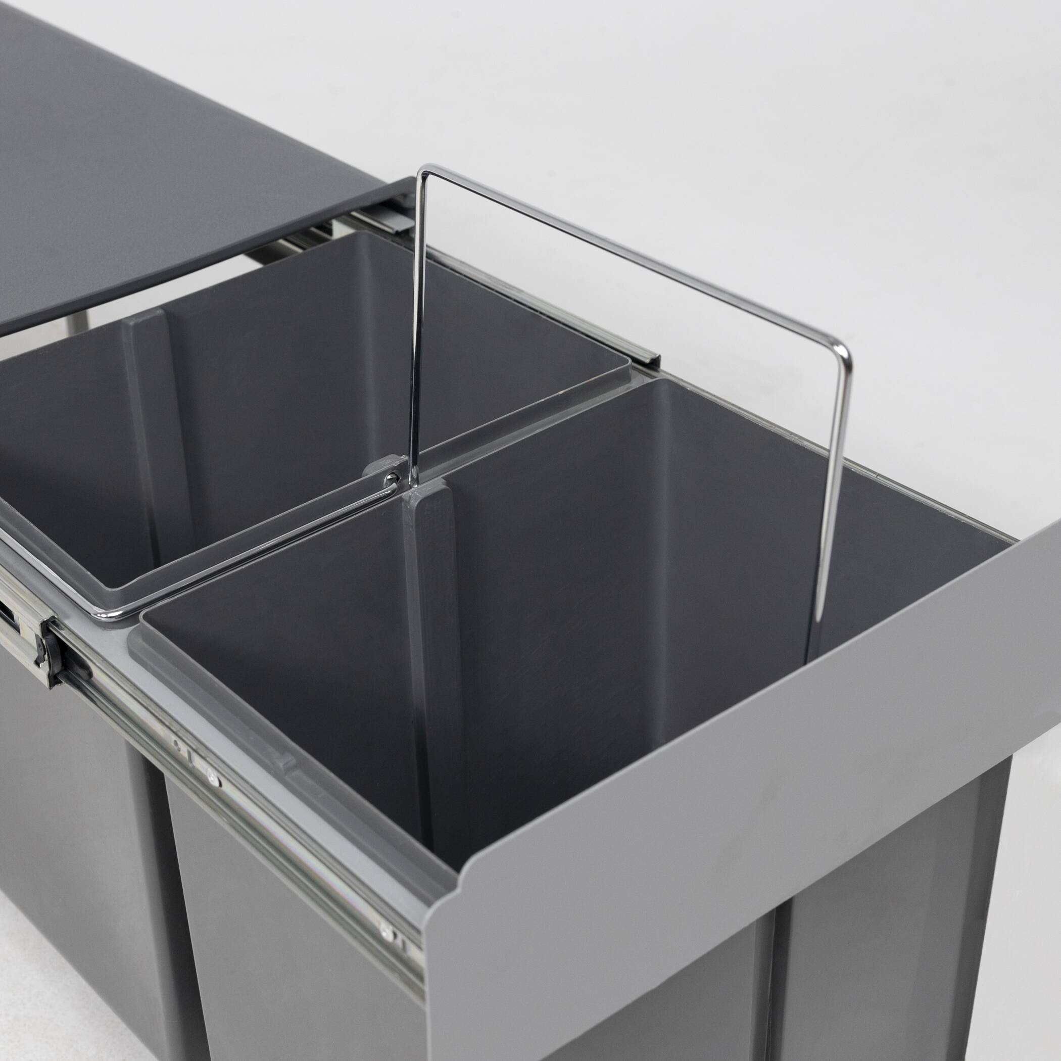 Сегрегатор для разделения мусора на 2 ведра по 18л. Крепление к дну ящика, без крепления к фасаду.
