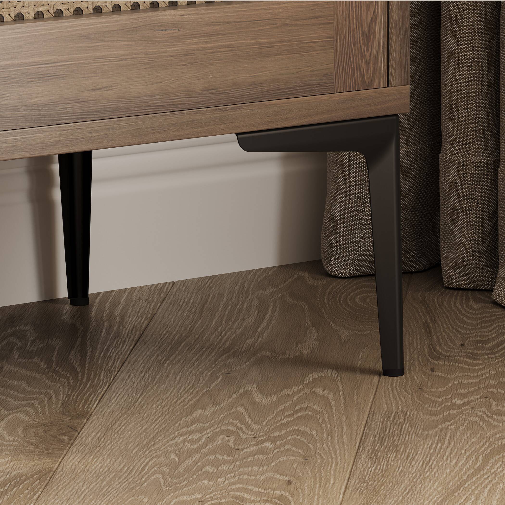 Словно изящная нога танцовщицы на высоком каблуке — тонкая, но уверенная, эта угловая опора держит мебель так же легко, как балерина балансирует на пуантах.