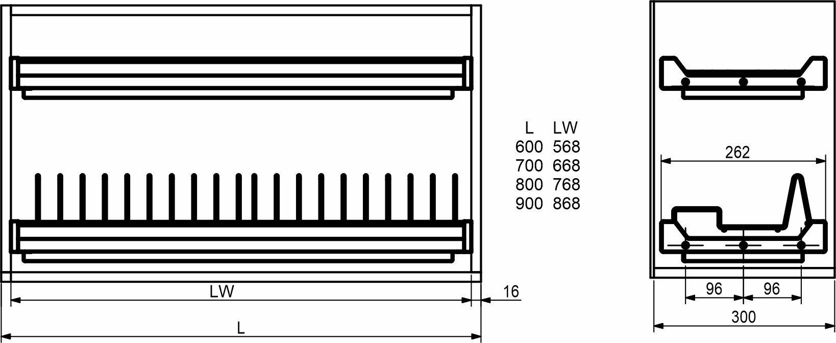 Посудосушитель премиум-класса из нержавеющей стали с хромированным покрытием. Толщина прутьев 3 и 4 мм. Длина сушки рассчитана на стандартный ящик из ДСП 16 мм. Каждый посудосушитель упакован в индивидуальную коробку.