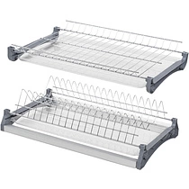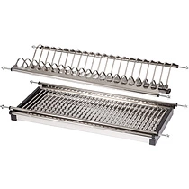В некоторых сушках по желанию нижний ярус можно использовать под тарелки, а верхний под кружки либо же поменять их местами. Cушки могут быть дополнены направляющими для удобного и быстрого выдвижения. В угловом ящике кухонного гарнитура лучше использовать угловую модель сушки.