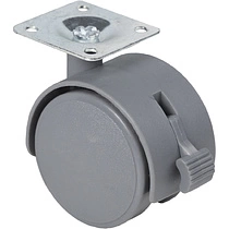 Колесо меб. пласт. d40 с площадкой с торм., серый AKS