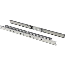 Помимо места крепления отличаются направляющие принципом своей работы. Могут работать синхронно (благодаря специальному тросику) либо нет. Синхронность работы проявляется в том, что при выдвижении одной части столешницы, автоматически выдвигается и противоположная сторона. Задвигаются они по такому же принципу и фиксируются специальным фиксатором либо замком.