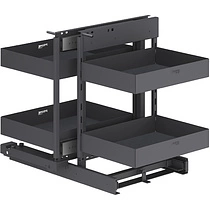 Магический угол — это умное и стильное решение для рационального использования пространства в угловых кухонных шкафах. Его главная задача — сделать каждый уголок кухни доступным, функциональным и удобным. Система состоит из выдвижных корзин, которые плавно и бесшумно «выезжают» при открытии дверцы, предоставляя полный обзор и легкий доступ ко всему содержимому.