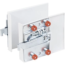 В ассортименте AKS вы также найдете трехсоставной навес с нагрузкой до 50 кг, состоящий из уголка, шайбы и накладки. Регулируется благодаря перемещению шайбы насечкам в уголке.