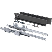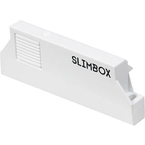 AKS же представил свой продукт с пожизненной гарантией и отвечающий всем необходимым требованиям современного мебельного рынка - SLIMBOX. Это современная система выдвижных ящиков, также представлена в вариации с механизмом push-to-open. Система имеет боковины толщиной до 12 мм, высотой 86, 128 или 175 мм и представлена в длинах от 300 до 500 мм. Благодаря тонким стенкам увеличивается вместимость выдвижного ящика на 20%. SLIMBOX представлен в двух цветах: белый и графит. В комплект входят: две боковины, пара направляющих, крепления фасада, заглушки, саморезы, инструкция. Чтобы изготовить выдвижной ящик в домашних условиях надо будет всего лишь самостоятельно сделать дно ящика, заднюю стенку и фасад. Бокс снабжен системой регулировки в 2-х плоскостях для фиксирования фасада относительно корпуса и соседних фасадов. Ящик способен выдержать до 45 кг постоянной эксплуатационной нагрузки, срок его службы составляет около 100 000 циклов открывания/закрывания. Системы Слимбокс обеспечивают плавное и плавное выдвижение и бесшумное закрывание.