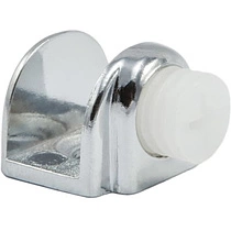 - держатели для стекла и зеркала, которые обычно дополнительно снабжены уплотнителем из пластика, силикона или резины, что придает дополнительную плотность зажиму и не позволяет повредить материал полки. Также они могут комплектоваться присосками или зажимными винтами. При выборе таких держателей важно учитывать толщину стекла / зеркала (обычно это 4-8 мм).