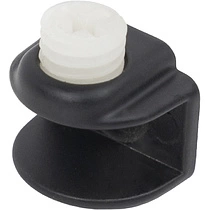 - Еще одна (довольно популярная) группа держателей для полок – это полкодержатели с функцией стяжки. Они представляют собой пластиковую часть, которая предварительно забивается в поверхность, и металлический шток. Такая конструкция позволяет не только зафиксировать полку, но и стянуть элементы мебели.