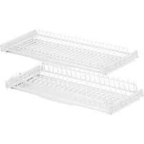 В некоторых сушках по желанию нижний ярус можно использовать под тарелки, а верхний под кружки либо же поменять их местами. Cушки могут быть дополнены направляющими для удобного и быстрого выдвижения. В угловом ящике кухонного гарнитура лучше использовать угловую модель сушки.