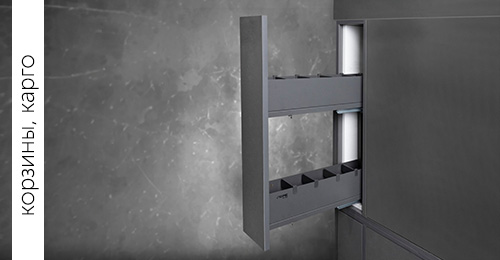 Современные решения кухонного наполнения в графите (листовая сталь, плоский прут)