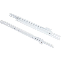 AKS представлены роликовые направляющие неполного выдвижения с двойным фиксатором в закрытом положении и защитой от выкатывания с нагрузкой до 25 кг. Форма профиля с желобом (дополнительное ребро жесткости). Материал ролика - POM. Такие направляющие доступны по цене, не требуют смазки, просты в монтаже (одна часть крепится к стенке шкафчика без особо сложных вычислений, а вторая накладывается прямо на дно выдвижного ящика и закрепляется снизу