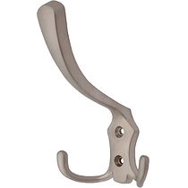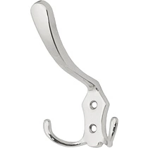 двухрожковые и трехрожковые варианты, они дают возможность повесить помимо одежды на верхнюю часть крючка и головной убор. Крепятся крючки с тремя рожками обычно с помощью саморезов. В связи с тем, что этот вид